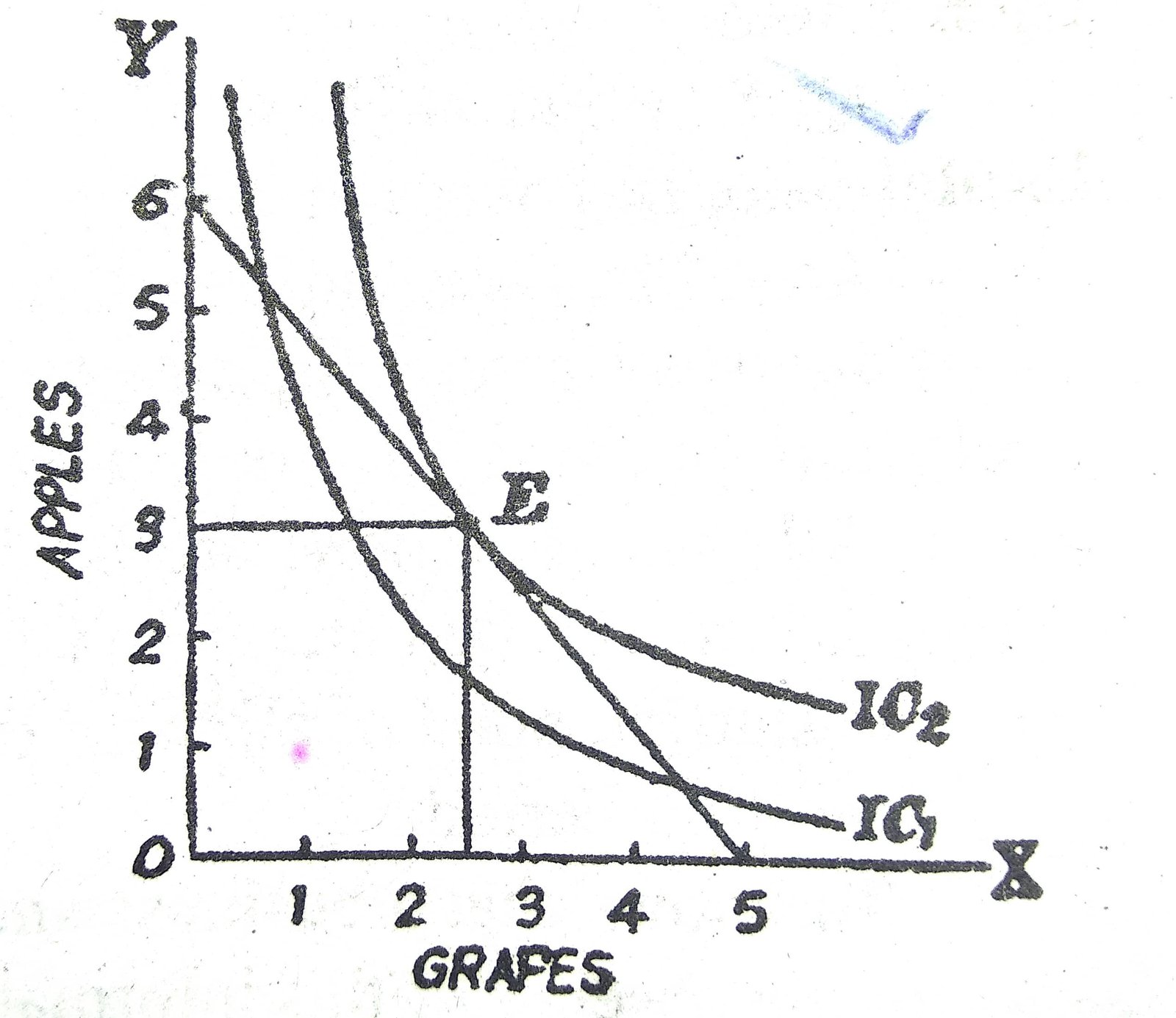 Since grapes have gone cheaper, the consumer would like to purchase more grapes in place of apples.