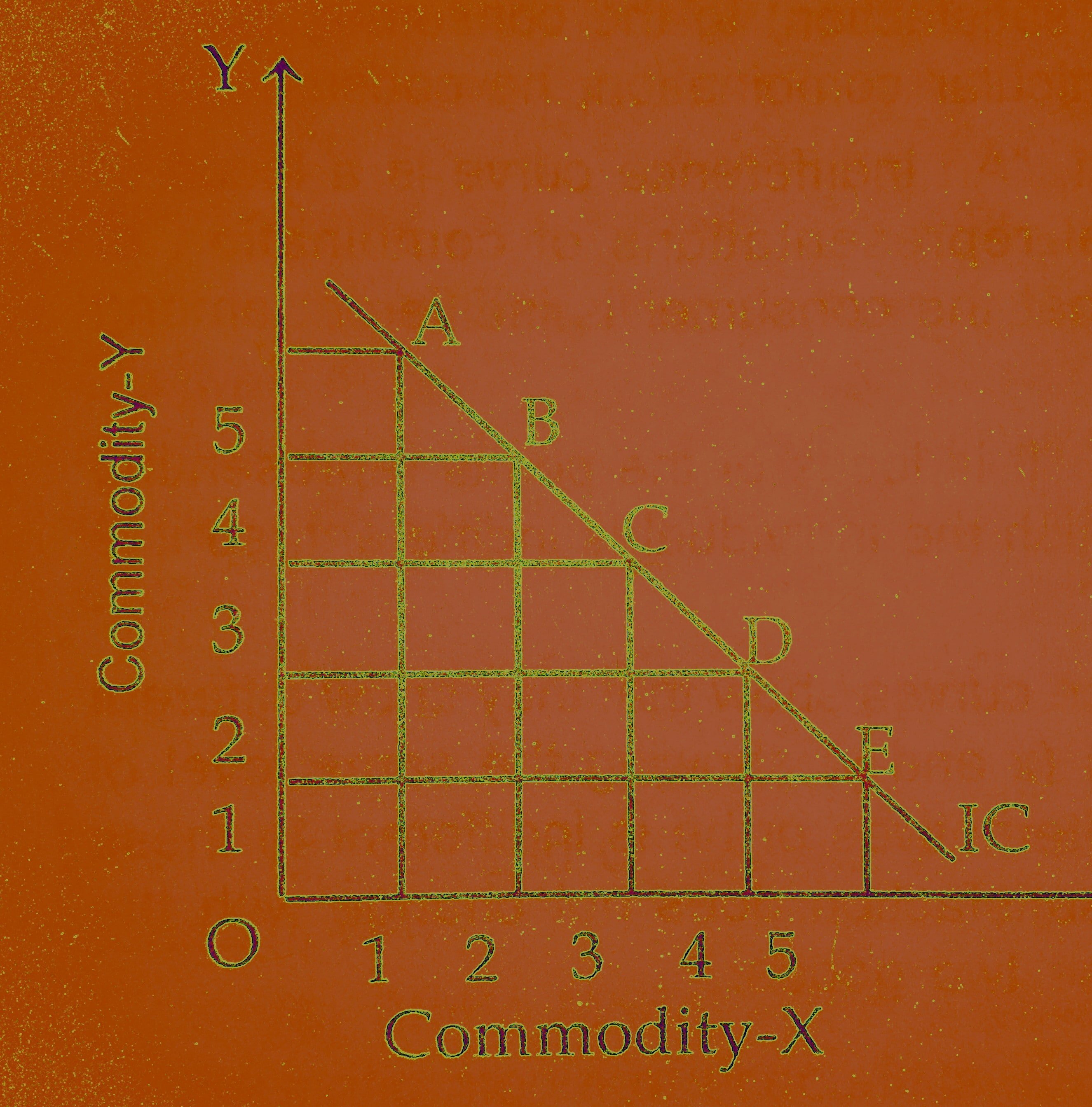 As we defined the indifference curve gives the same level of satisfaction with the different points of combinations of two commodities A, B, C, D, and E combinations.